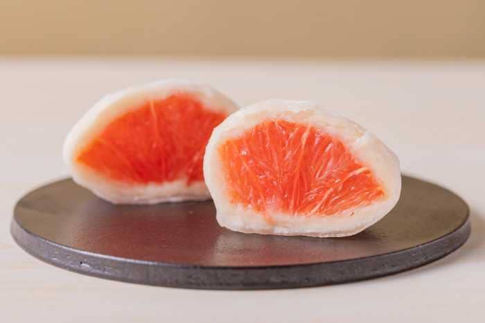 「観音山グレープフルーツ大福」は、日本では非常に珍しい国産グレープフルーツを使用したフルーツ大福です。