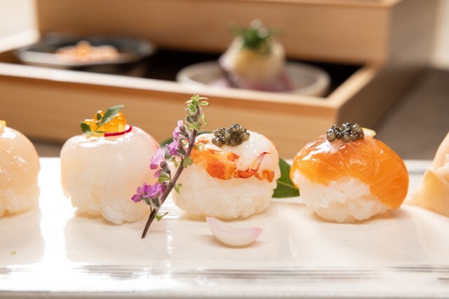 「シグネチャーコース」8,500円/前菜、手毬寿司9貫、椀物、デザート
