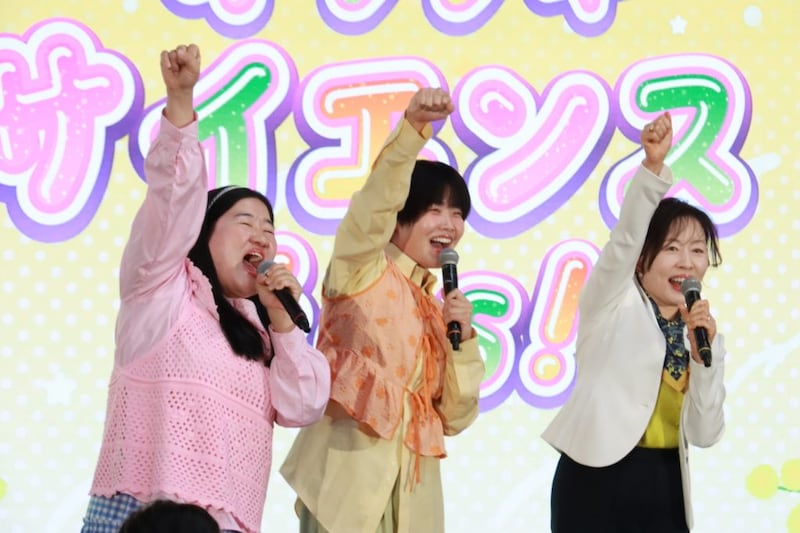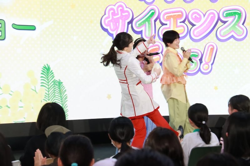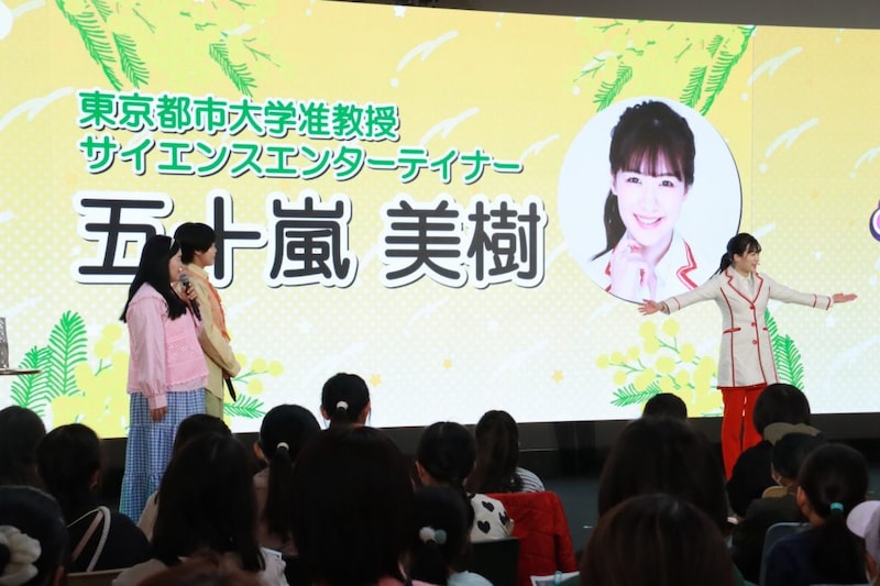 東京都市大学教育開発機構 准教授でサイエンスエンターテイナーの五十嵐美樹さんと、オープニングに続けてガンバレルーヤが登壇し、化学の楽しさと面白さを伝えるプログラムを行いました。