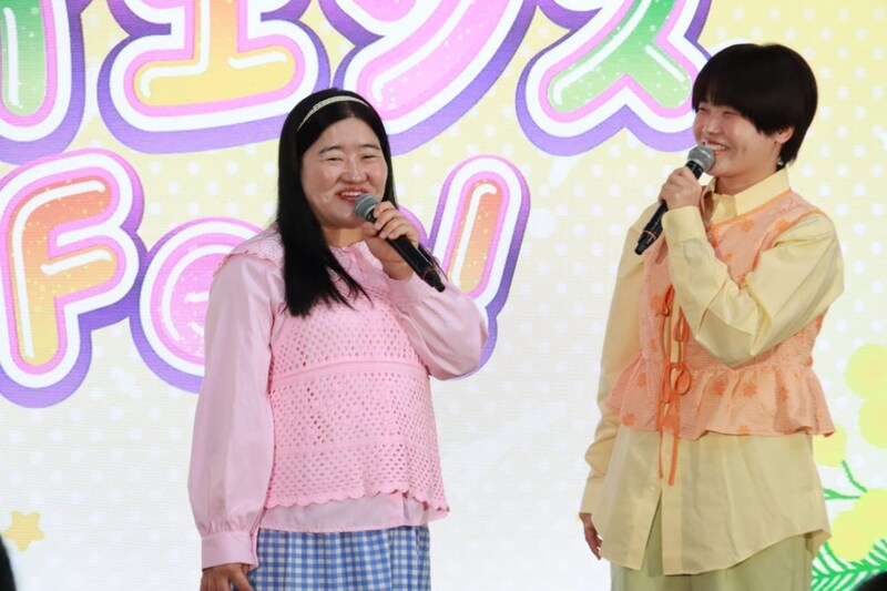 会場に多くの女子小中学生とその家族が訪れる中、本イベントの冒頭には、女性お笑いコンビのガンバレルーヤ・よしこさんとまひるさんが登壇。