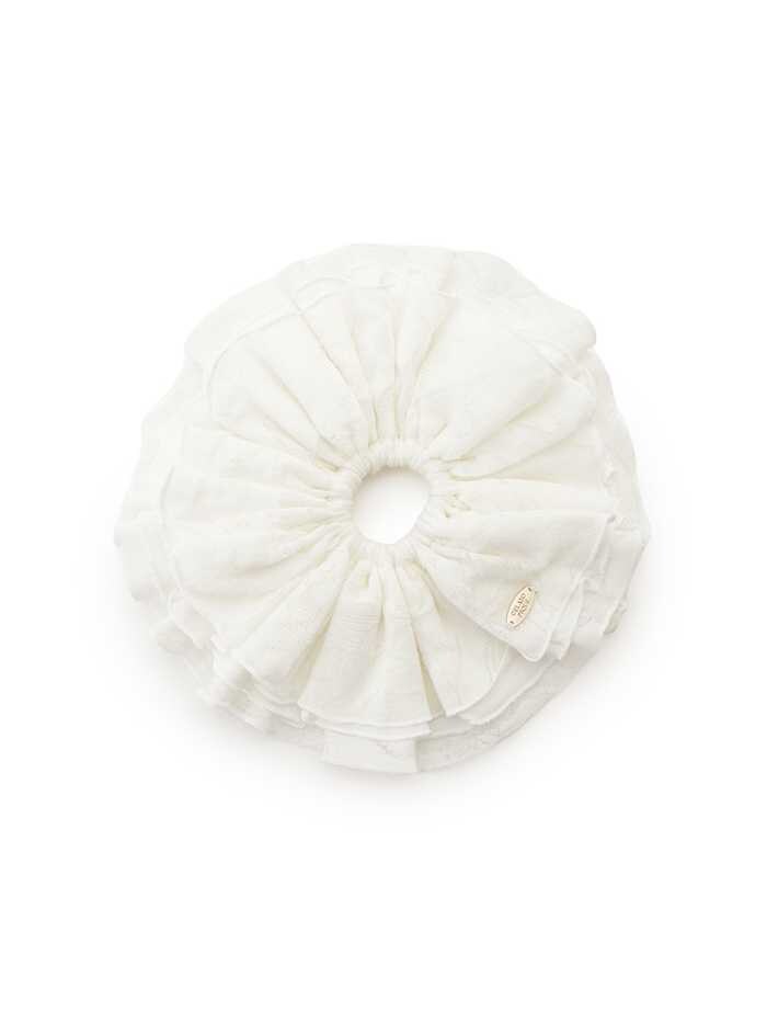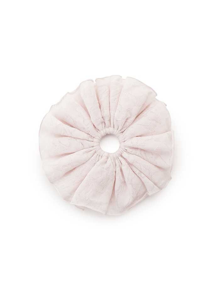 「さくらレーシージャガードシュシュ」は価格4,180円、サイズはフリー、カラーはオフホワイトとピンク(SAKURA着用)。
