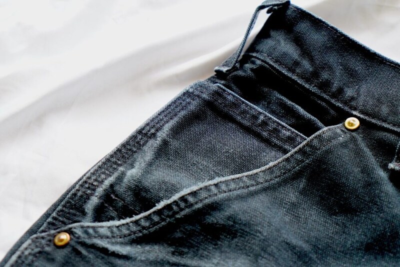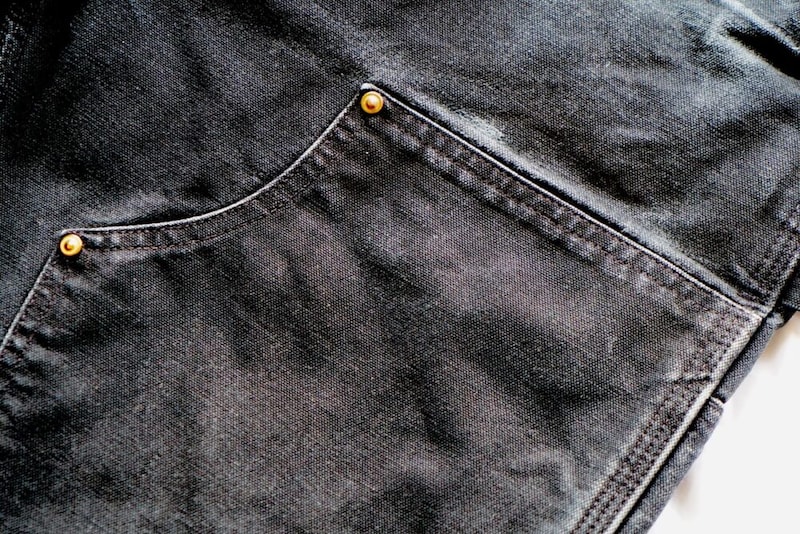座った状態でもアクセスしやすいスラントポケットに加えて、両サイドがリベットで補強されているため、破ることが難しいほどの耐久性をもっている。ブラックダック地ならではのスレもいい味になる。