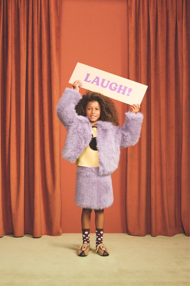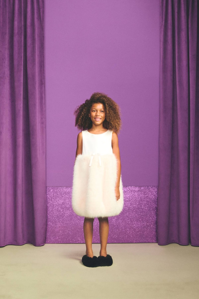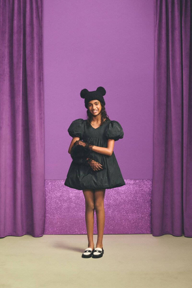 コラボ初となるキッズウェアは、メンズ・ウィメンズのプリントやパターン、シルエットが踏襲されたスタイリッシュなデザインに仕上がっています。ガールズコレクションでは、ディズニーキャラクターを彷彿させるふわふわ素材のパーティドレスがかわいさ満点!