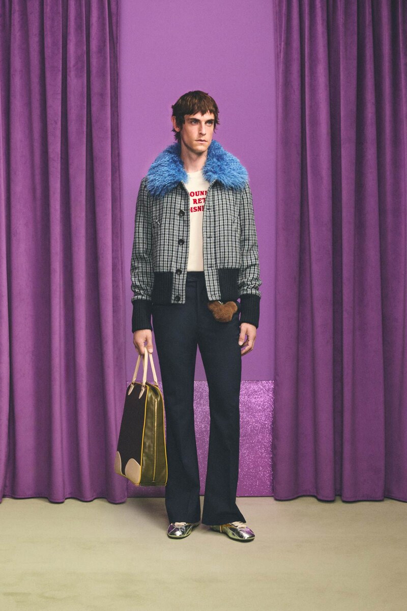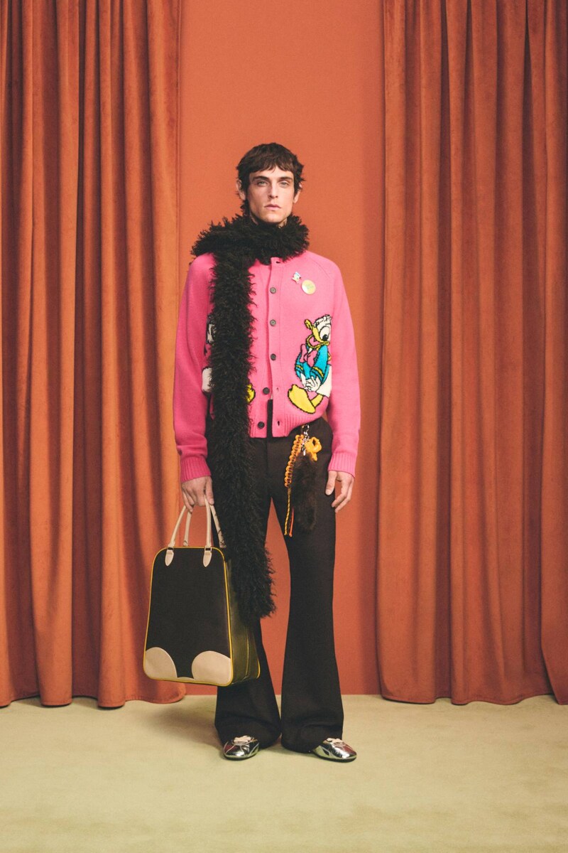 メンズは、ヴィンテージライクなベビーピンク、レーシングレッドのジャケットや、クラシックなトラックスーツなど、全体的にスポーツウェアの雰囲気が表現されています。キャラクターモチーフが施されたアイテムも着こなしのアクセントに。
