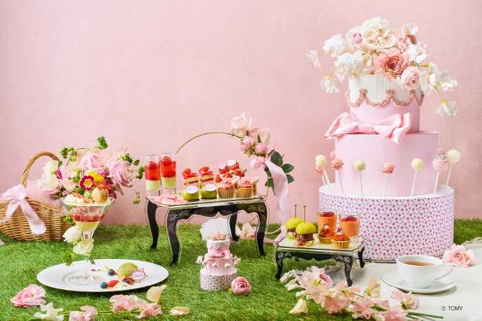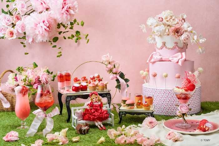 “Sweet Picnic”をコンセプトに、リカちゃんが大好きないちごとローズをテーマにしたスイーツ&セイボリーが並びます。