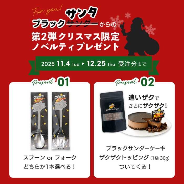 11月からはクリスマス限定で「ブラックサンダースプーン」や「フォーク」がプレゼントされ、さらにトッピング付き。