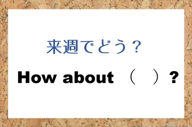 【答】 next week【会話例】How about next week?来週でどう? Sorry, I can’t. I already have plans. ごめん、無理だ。もう予定が入ってる。