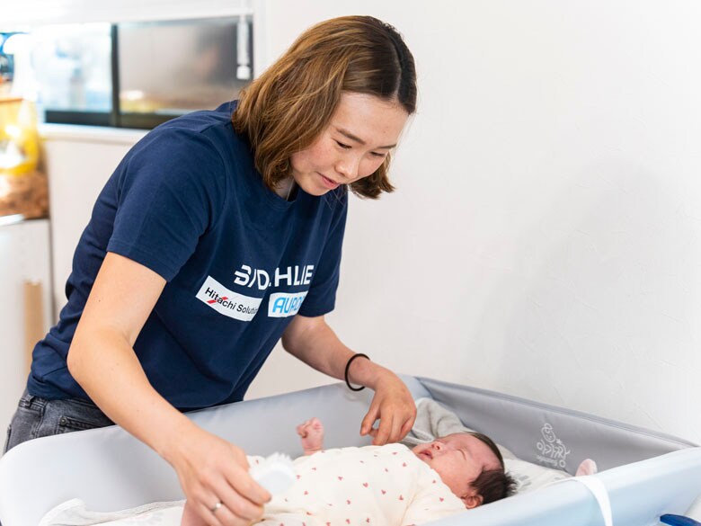 生後間もない娘の世話をする阿部(2023年5月撮影)photo by Tomohiko Sato