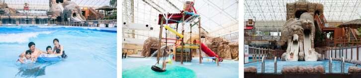 リゾート感あふれる「アドベンチャードーム」は雨が降っても楽しめる大迫力の屋内プールエリア。