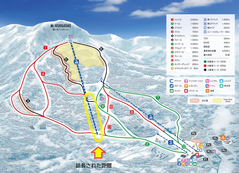 ということで、下に延ばすことでリフト配置の法則上も理想的な4コースが回せるようになるし、さらにツリーランも入れたらもっと選択肢が広がるよねって。