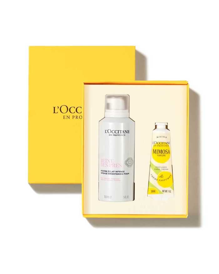 春の象徴ともいえるミモザの香りのハンドクリームと泡洗顔のセット。販売収益の一部は女性のエンパワーメント活動へ寄付されます。