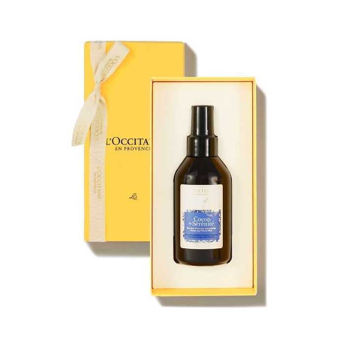 枕にひと吹きするだけで、ラベンダーの香りに包まれる癒しのピローミスト。オンライン限定の人気アイテムで、リラックスタイムを贈るギフトとして人気です。
