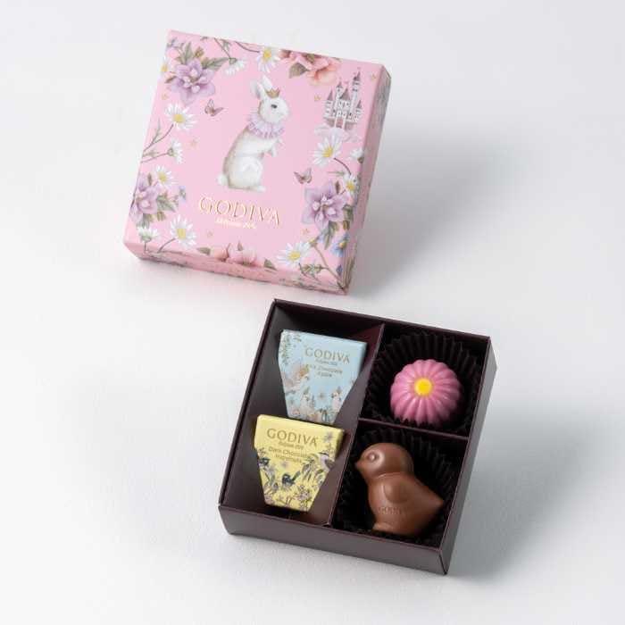 春の花々やうさぎを描いた可愛らしいパッケージも、このコレクションの魅力。心躍るチョコレートを詰め合わせたアソートメントや、プチギフトにもおすすめのアイテムが揃っています。