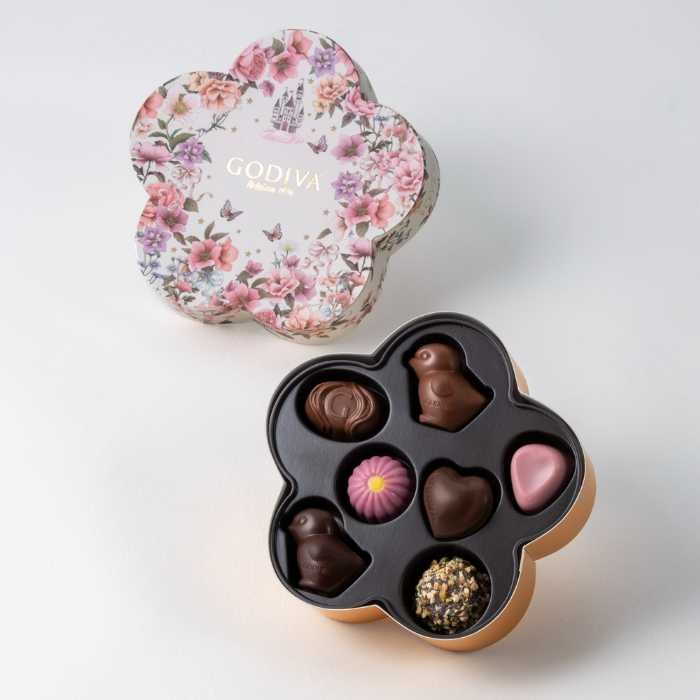「羽ばたく花咲く春セレクション7粒入」は、春の花をイメージしたフラワー形パッケージにチョコレートを詰め合わせ、価格は3,672円です。