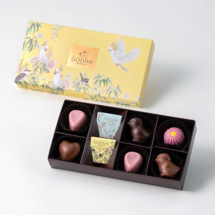 4粒入は春らしい花とうさぎが描かれたフェアリーなパッケージ、6粒入・8粒入・12粒入は羽ばたく鳥を表現したパッケージに、シーズン限定チョコレートとカレを詰め合わせています。