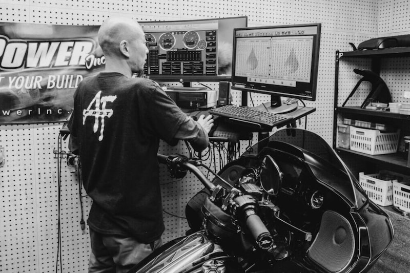 カムなどの交換からインジェクションのチューニングまでやってもらったのは福岡のカスタムショップ「サードプレイス」の代表である堤さん。ボンネビルのレースでヒロ・コイソさんのチームに一緒に行くようになって10年。ヒロも認めるチューナーで、ユニークな風貌ながら腕は確かだ。