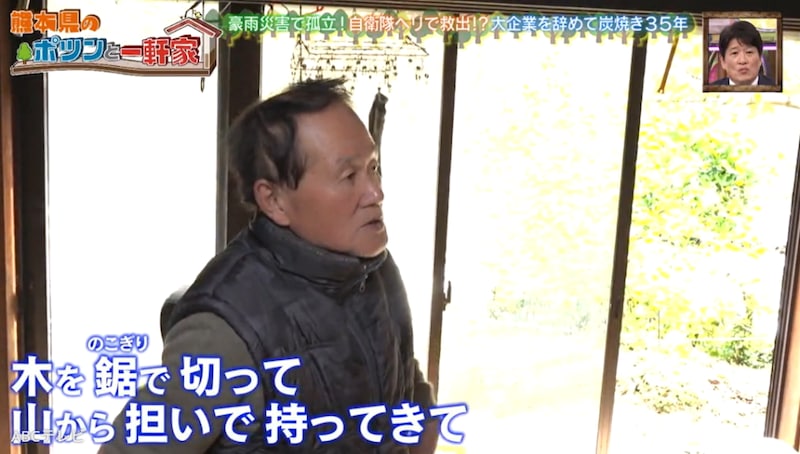父親が会社勤めをしていた家に、男2人・女2人、4人きょうだいの長男として生まれ育った男性は、高校卒業後に地元を離れ、兵庫県にある、船や火力発電設備を作る会社に就職。 享年41で亡くなった父親の代わりに21歳から長男として一家を支え、弟の学費も工面し大学を卒業させた。 30歳で会社を辞め、実家である熊本県の山奥のポツンと一軒家へ戻ってきたという。長男として、家を守るのは“俺しか居ない”と責任を感じていたのだ。