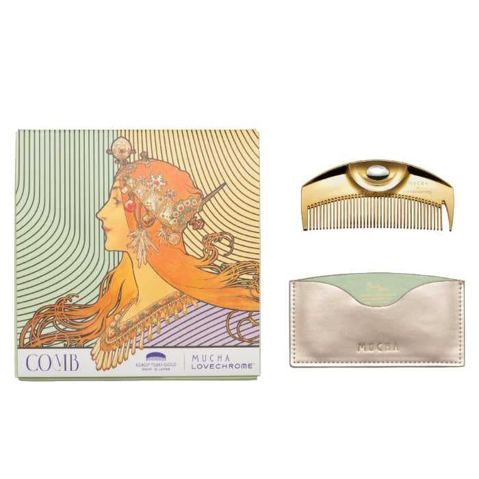 芸術家ミュシャ財団による世界初の公認ブランドMUCHA(ミュシャ)から、日本の美髪コームブランドLOVECHROME®(ラブクロム)との初コラボレーションアイテムが登場。2026年3月12日(木)より、MUCHA全店舗およびオフィシャルオンラインストアで発売されます。純金加工のヘアコームと、ミュシャの代表作『ゾディアック』から着想を得たアートデザインが魅力。日常のヘアケアに芸術の美しさを取り入れる特別なコレクションです。