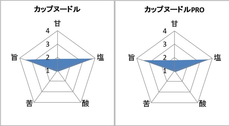 最も差が出ていたのは総合的な味の強さを示す「コク」の数値。通常のカップヌードルがカップヌードルPROを0.16ポイントほど上回っていました。