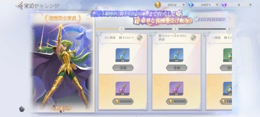 イベント期間中、闘士「牡羊座・シオン」を指定の条件まで育成すると、豪華報酬を受け取れます!