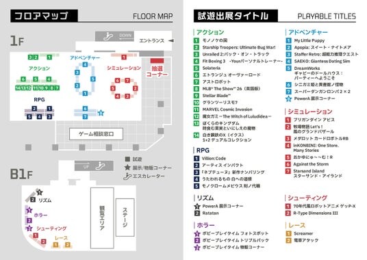 各タイトルの試遊場所、ステージイベント会場、参加型企画などをご確認いただけます。