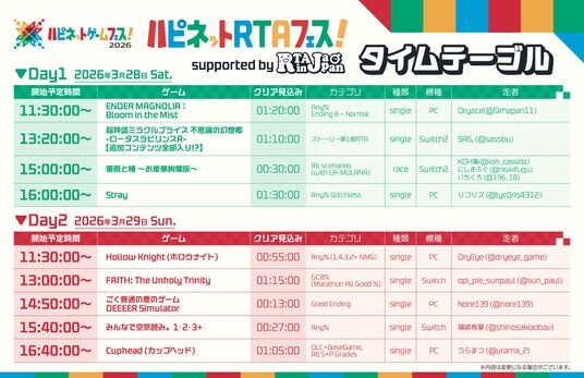 「ハピネットRTAフェス! supported by RTA in Japan」ステージを開催