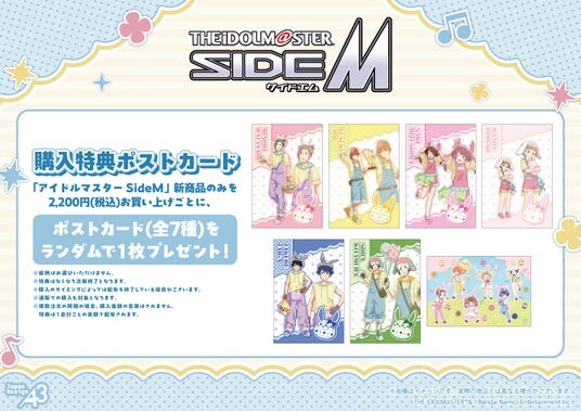 『アイドルマスターSideM』の新商品のみを1会計2,200円(税込)お買い上げごとに、購入特典としてポストカード(全7種)を1枚プレゼントします♪