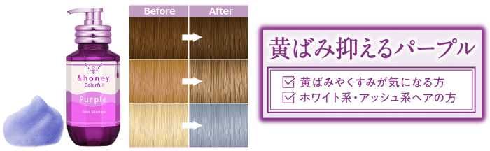 アンドハニー カラフル カラーシャンプー ラベンダーパープルは、透明感のあるパープル系カラーを美しく保つアイテムです。