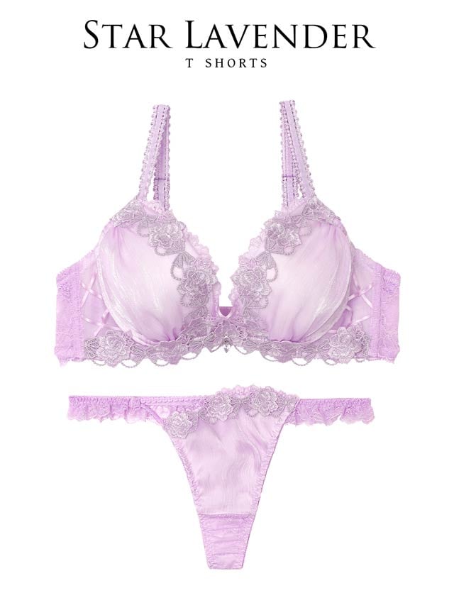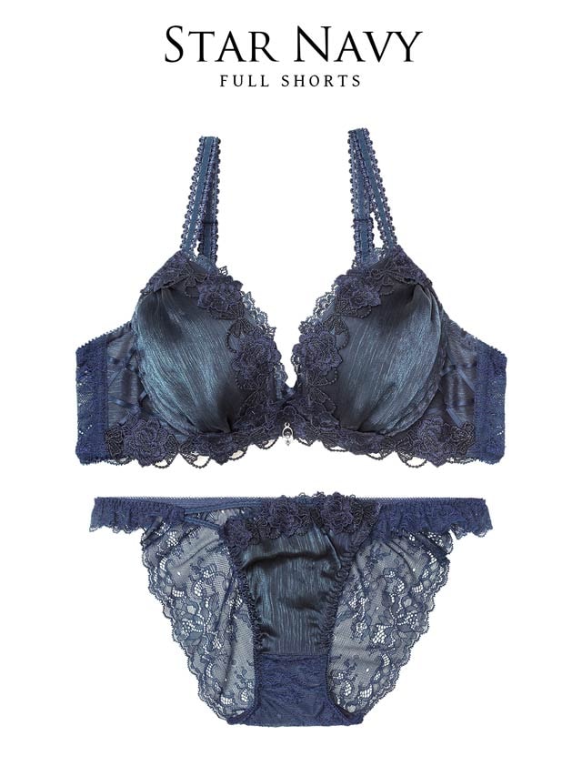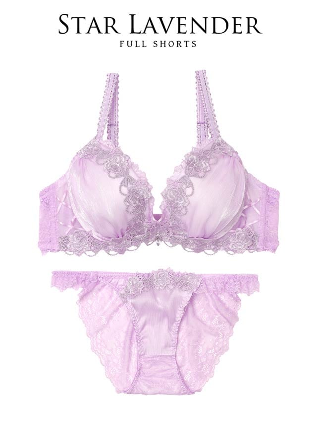 夜空に輝く星をイメージしたロマンティックなランジェリー。艶感のある楊柳シフォンとラメ入りケミカルレースが組み合わさり、デコルテを華やかに彩ります。