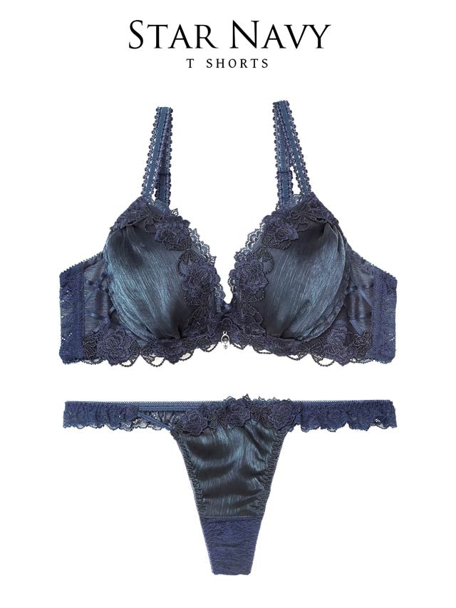 ブラックよりもやわらかく肌になじむ透け感ネイビーが魅力のランジェリー。
