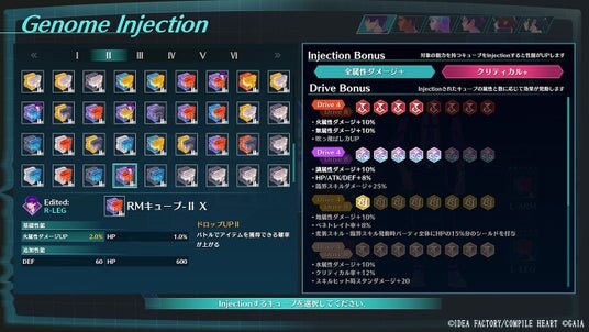 単にゲノムキューブがもつ効果が得られるだけでなく、キャラクターとの相性や属性を重ねることで強化される効果も。