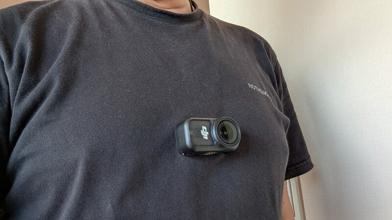 磁気ストラップが付属し、シャツの下にかけるとシャツの上からカメラの装着が可能。両手が使えるハンズフリーの状態でPOV撮影が可能になります。
