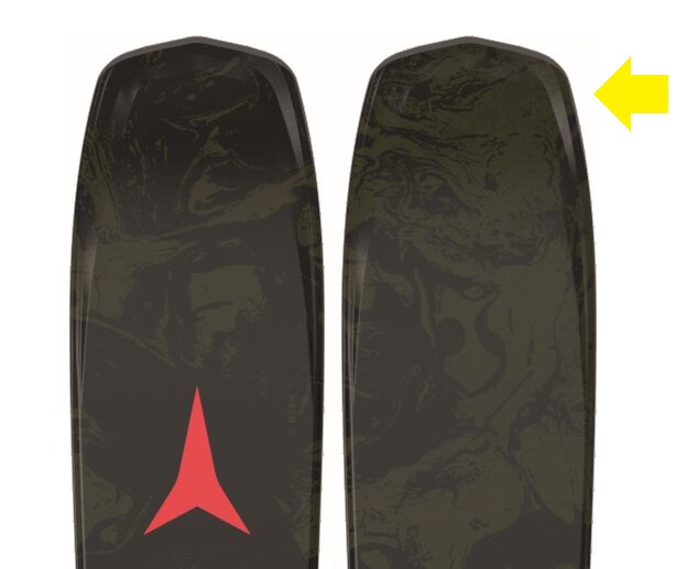 ATOMICスキー独自のテクノロジーが「HRZN(ホライゾン)テクノロジー」だ。スキーのノーズとテール部分にベベル(傾斜)を施した構造を持たせることにより、パウダーでの浮力や、荒れた雪面での操作性、安定性が向上が期待できる、というもの。