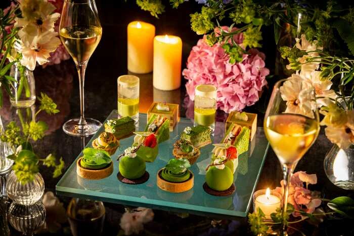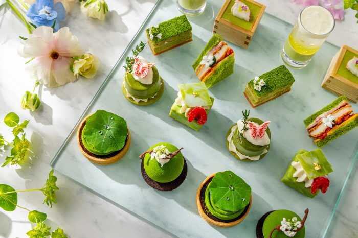 コンラッド東京の「抹茶と香りのアフタヌーンティー“ボタニカルガーデン”」は、宇治抹茶とハーブやフルーツを組み合わせた華やかなスイーツやセイボリーが楽しめる期間限定イベント。