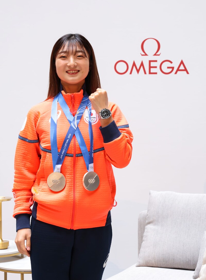 はい。ドゥオーモに行ったときにオメガのお店があって、そこに自分がビールマンスピンをしている写真があったので、一緒に写真を撮りました。それと、ジャンプの映像を細かく分析できるシステムもあって、すごく身近にオメガを感じました。