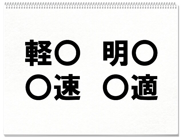 【答】 快それぞれ「軽快」「明快」「快速」「快適」となります。
