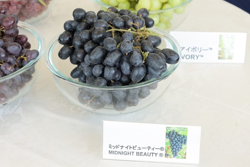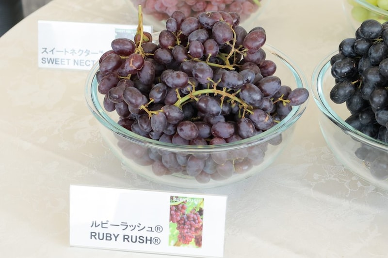 この日試食用として紹介されたのは、明るい緑色で高糖度・パリッとした食感が特長の「アイボリー」、鮮やかな赤で爽やかな甘さを備えた「ルビーラッシュ」、深い黒色と濃厚な甘みを打ち出す「ミッドナイトビューティー」、自然な甘さとジューシーさをうたう「スイートネクター」の4品種だった。