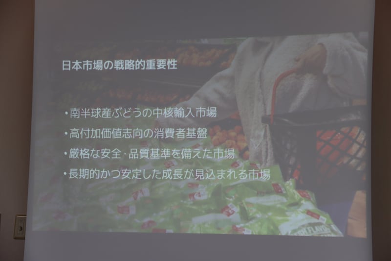これを受け、ATGAでは日本に適したプレミアムなぶどうを厳選し、日本人に好まれる「高糖度」「クリーンな風味」のぶどうを積極的に輸出していくと語りました。