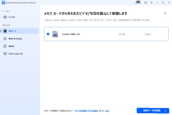 ここでは、無料で使えるEaseUS Data Recovery Wizard Freeを利用して、SDカードから消えたデータを復元する手順を紹介します。特別な知識は必要なく、お手持ちのパソコンで、どなたでも簡単にお試しいただけます。