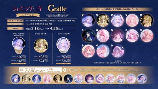 2026年3月18日からシャイニングニキの5周年を記念し、アニメイトカフェグラッテにて、コラボ企画を実施いたします。