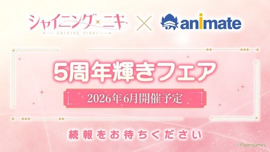 ■2026年6月「『シャイニングニキ』×アニメイト 5周年輝きフェア」開催決定!