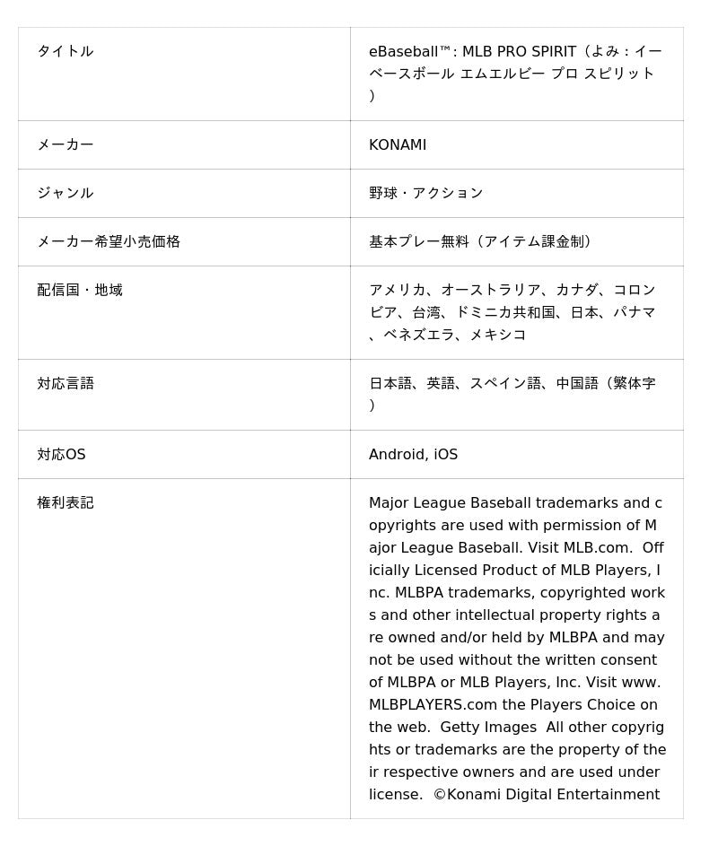 モバイルゲーム『eBaseball(TM): MLB PRO SPIRIT』とは