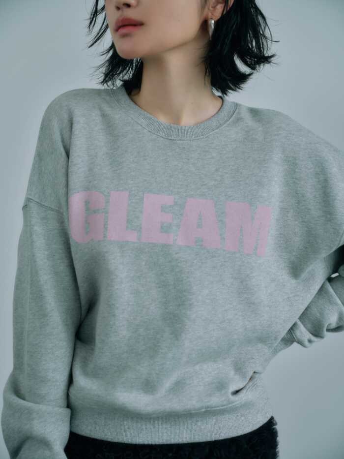 短め丈でボトムを選ばず、バックのセンター切替でスッキリ見え。ロゴ『GLEAM』は『輝き・キラメキ』を意味し、レイヤードスタイルにも◎。