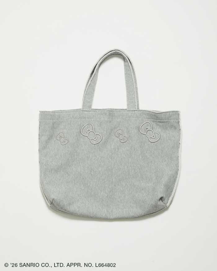 フロントにはキティのリボン刺繍、背面にはATTISESSIONロゴを配置。A4書類やノートPCも入る大きめサイズでデイリー使いに便利です。