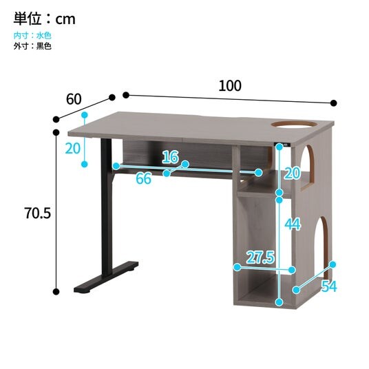 【サイズ】幅 100cm × 奥行 60cm × 高さ 70.5cm