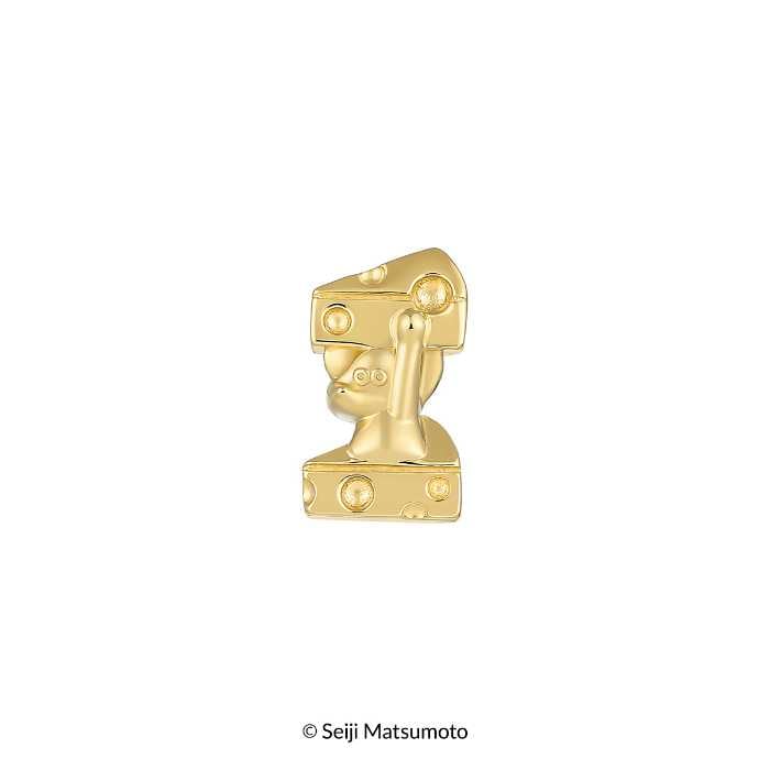 コレクションの中でもひときわ存在感を放つのが、K18やプラチナを使用した特別なピアス。ANDYがチーズに埋もれるユーモラスなデザインを、本格素材で仕上げたラグジュアリーなアイテムです。