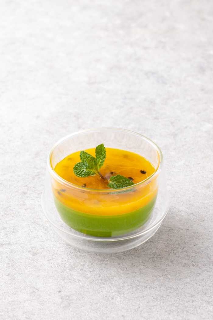 「MATCHAマンゴーパンナコッタ」は880円(税込)。抹茶パンナコッタにマンゴーソースを合わせ、隠し味にパッションフルーツジュレをプラス。