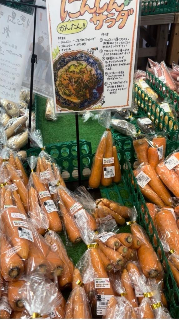今回行ったところは、名前の通り農産物を中心に販売している直売所やけど、いわゆる田舎にある道の駅のような雰囲気とは少し違っていて、交通量の多い道路沿いにある大きな直売所という印象でした!