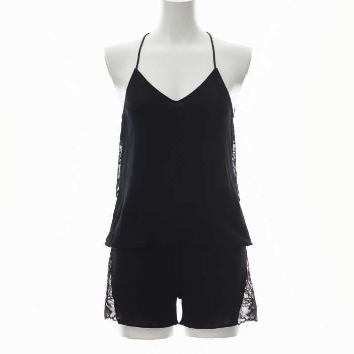 100双フライスバックレースキャミソール/100双フライスフレアパンツ