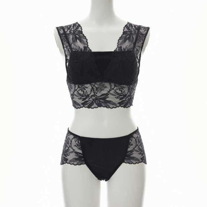 シルクアコーディオンクロップドレースブラ/シルクアコーディオンレーシーショーツ